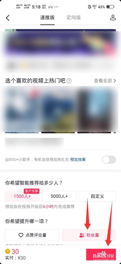 在希望提升哪一项后面点击涨粉丝,之后点击支付。通过官方助推涨粉丝比较快。