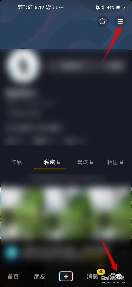 打开抖音我的页面,点击右上角的菜单。
