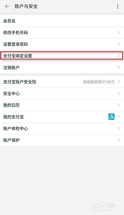 在“账户与安全”里面选择“支付宝绑定设置”。
