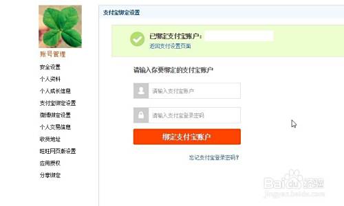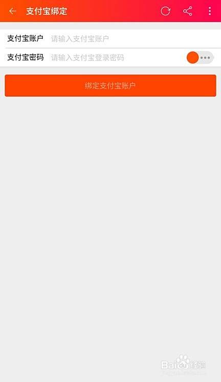 输入需要绑定的新的支付宝的账号和密码,点击“绑定支付宝账户”即可。