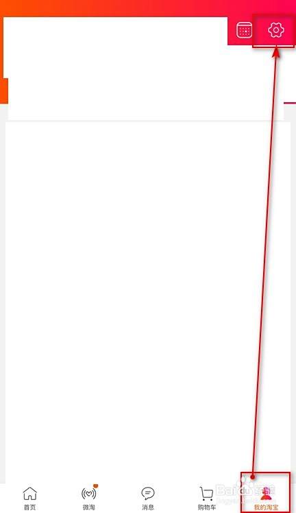 打开客户端,在下方选择“我的淘宝”,然后在右上角选择齿轮样式的图标,进入“设置”。