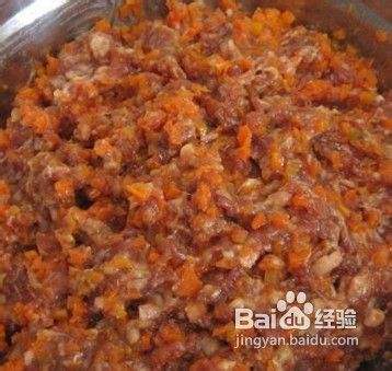 牛肉茸加入萝卜粒丝、洋葱细末和匀,加入精盐、胡椒粉、酱油、味精、香油、干淀粉、鸡蛋液拌匀,牛肉饺子馅就成了。