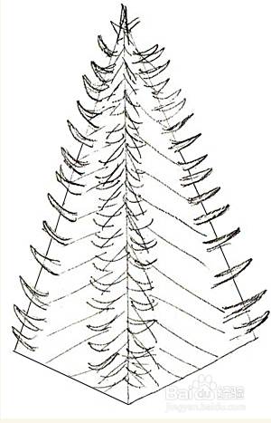 绘制圣诞树的三角形轮廓并画出中线。