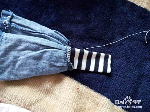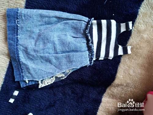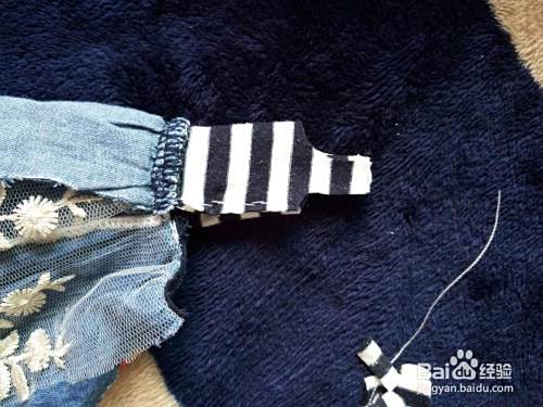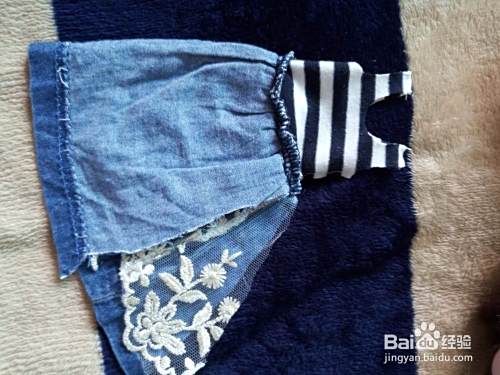 把侧边缝合,注意,外面的蕾丝先不要缝,不然蕾丝就会和牛仔布粘在一起,呆板