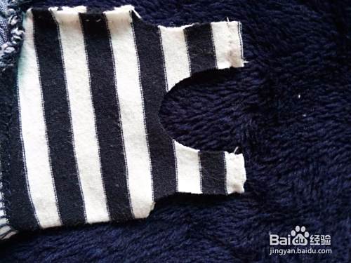 把布料上部分修剪成方形,长度和宽度要依着娃娃的尺寸,稍多出点,因要留缝缝