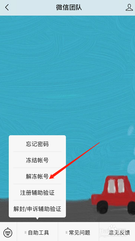 关注微信团队后,点击自助工具,如下图所示: