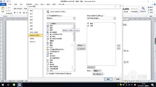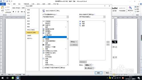 第二步:在打开的“Word选项”对话框中选择“快速访问工具栏”。(也可以打开Word2010,右击自定义快速访问工具栏区域或选项卡区域,然后选择“自定义快速访问工具栏”)