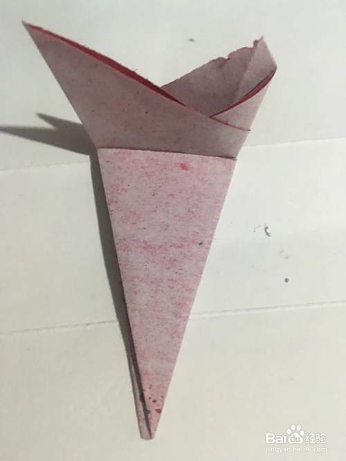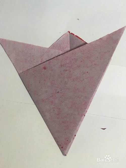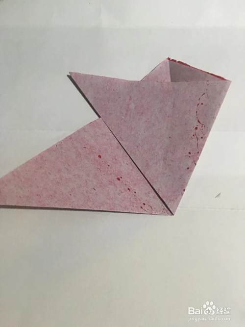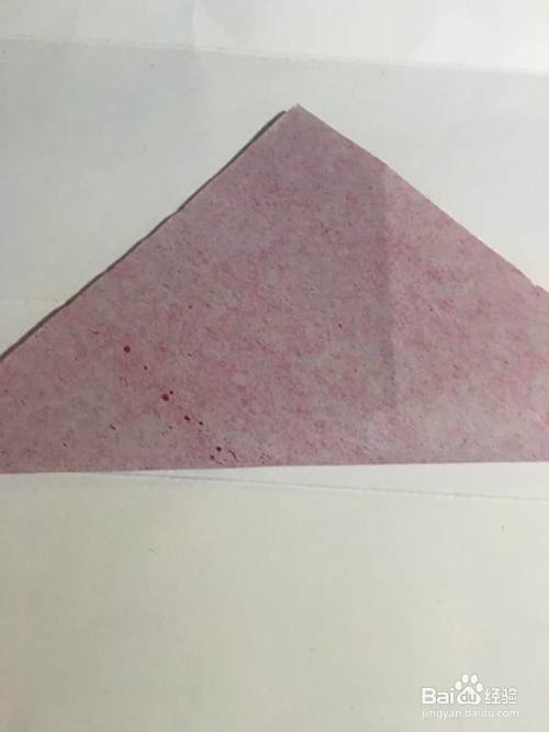 第一步 取一张正方形红色彩纸(长16厘米X宽16厘米) 如图摆放 然后从下向上对角折叠