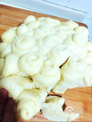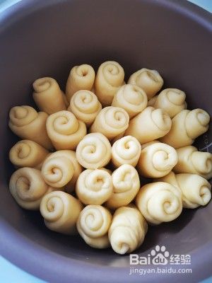 面粉里放入酵母,白糖,温牛奶,250克鸡蛋,搅成絮状放入食用油,揉到面团光滑,醒发大概一到二小时,发到两倍大,然后再揉揉去掉空气,揉成长条切断干成牛舌状卷起来,中间切开