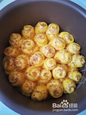 电饭锅底刷油,切开那面粘蜂蜜放到锅中,放锅里盖上锅盖再醒20分