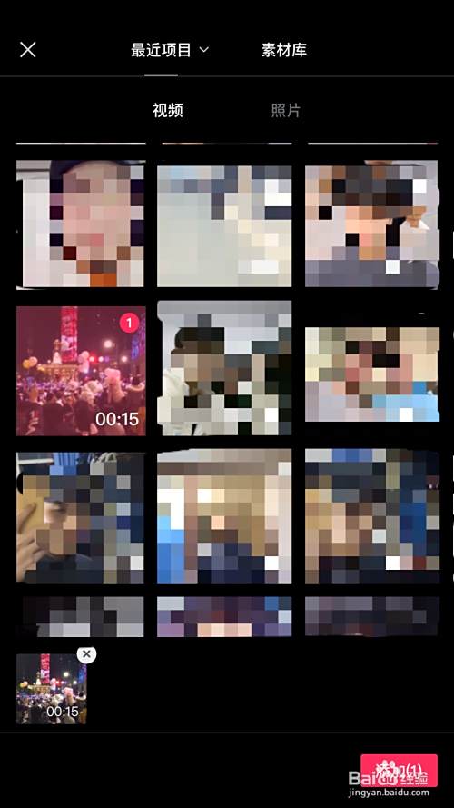 接下来在打开的选择视频的页面中选择要编辑的视频,点击下面的添加到项目的按钮。