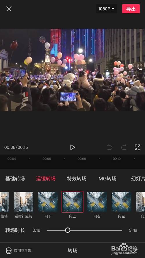 这样我们就可以把该视频从定位的位置分割为两段了,用同样的方法我们可以把视频分割成几部分。然后给剪辑的地方加上转场过渡。