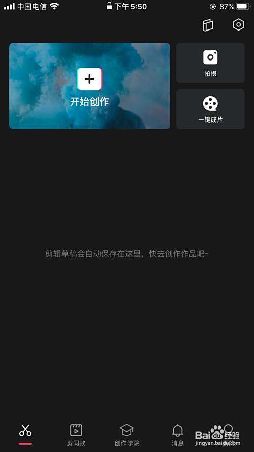 然后在打开的剪映主界面,点击“新建项目”的图标。