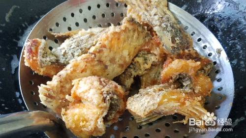 鱼肉炸到两面金黄就可以捞出来沥干油分备用了。