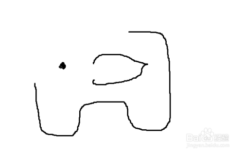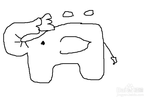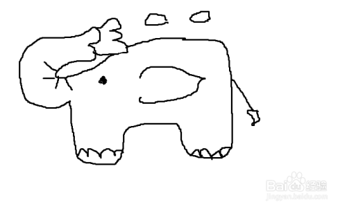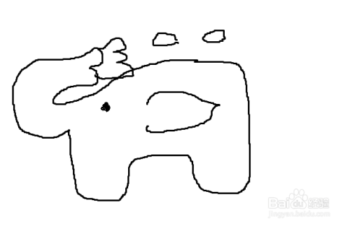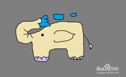 接着画上象的鼻子,我们都知道大象的鼻子是能吸水的,也能喷水,要画的灵活点,水滴可以画的尖点