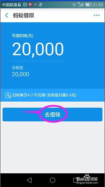 在蚂蚁借呗里,可以看到自己可以贷款的额度,点一下“去借钱”,就可以实现芝麻分贷款了。