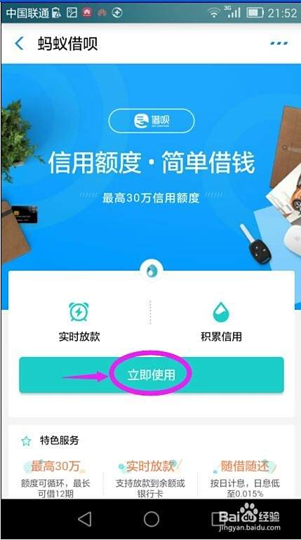 点一下蚂蚁借呗,在出现的页面点立即使用;