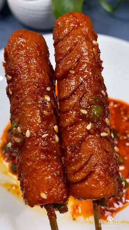 碗中加入孜然粉辣椒粉白芝麻葱花白糖盐热油搅匀,火腿肠沾上料汁即可。