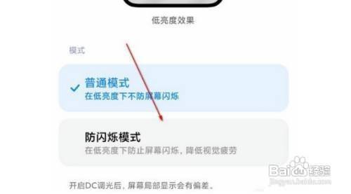 3、在此就可以看到防闪烁模式,点击右侧进入设置。
