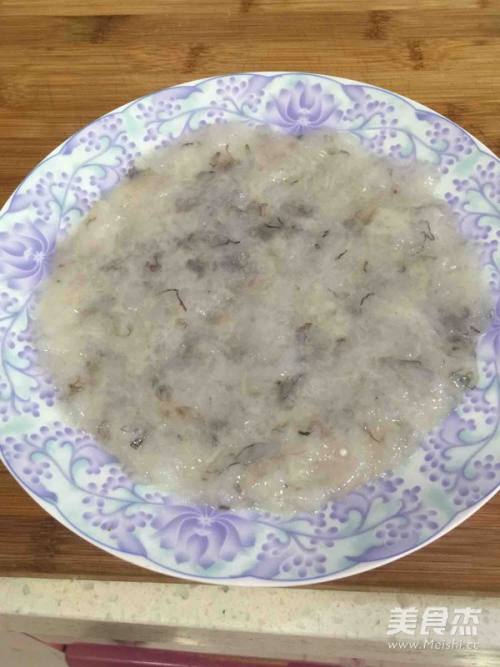 在虾泥中加入少量盐、鸡粉、淀粉、鸡蛋清,搅拌均匀。