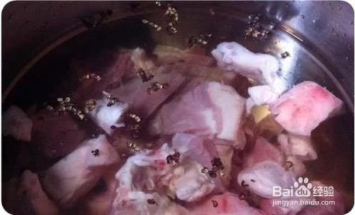 羊肉中倒入冷水,加料酒、花椒(去膻味),同煮,开锅后漂去浮沫。待羊肉变白即可捞出用温水冲干净。