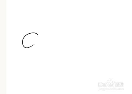 首先,在纸张的一侧,画一个开口的长圆形,如图所示。