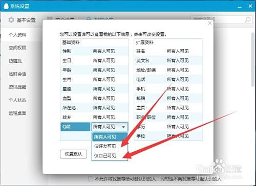 可以看到有两个选项,一个是仅对好友,一个是仅自己