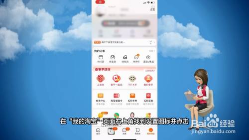 在“我的淘宝”页面右上角找到设置图标并点击。