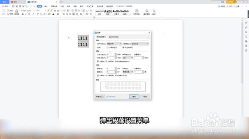 在屏幕上方找到开始选项卡,在开始选项卡里面选择第三个段落的功能组,点击这个功能组右下角的三角符号,弹出段落设置菜单。