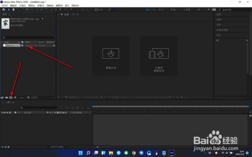1.当前我们打开AE软件,导入素材后,在下方有一个新建合成的按钮。