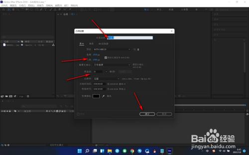 4.在弹出的对话框中设置合成的名称,像素以及宽高比等参数,最后点击确定。