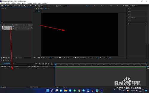 5.这个时候就新建好了一个空白的合成窗口,我们先将素材拖拽带下方空白处。