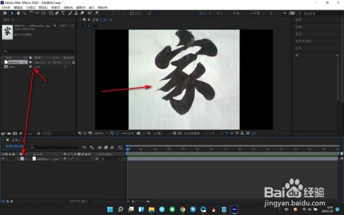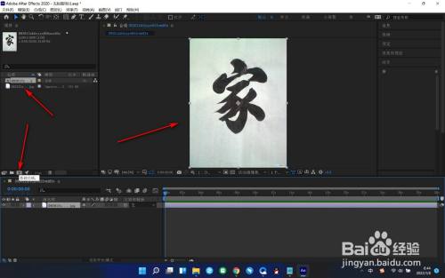 6.这个时候就会将素材导入到新建合成面板中了,注意只能拖拽素材不能将合成项目进行拖拽。
