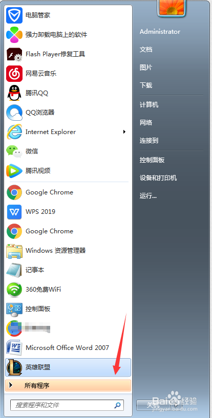 点击电脑左下角鼠标左键开始,如下图,看到英雄联盟