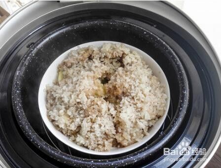 煲中放入400毫升清水,放入一个支架,盘子放支架上