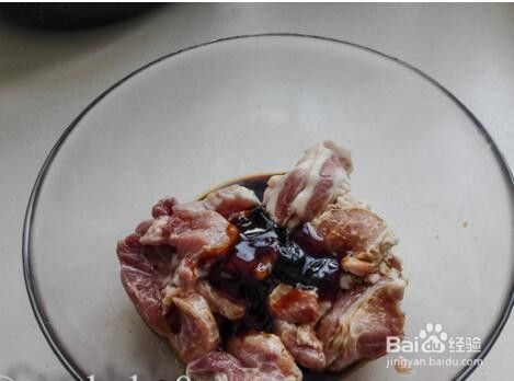 五花肉切稍厚一点的大片,放入花雕酒、生抽、老抽、蚝油拌匀后腌渍一个小时左右