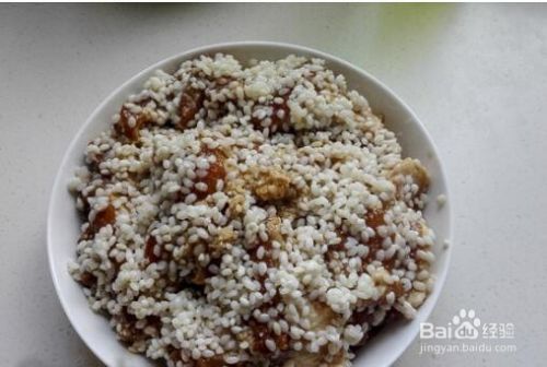 配料是自己调配的,因为喜欢吃一粒一粒的糯米,所以保留了一部分糯米未打成米粉,