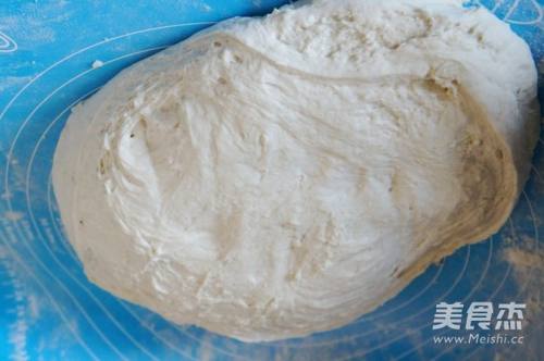 5将约1汤勺苏打粉用温水化开,慢慢加入发好的面盆中反复均匀揉成面团