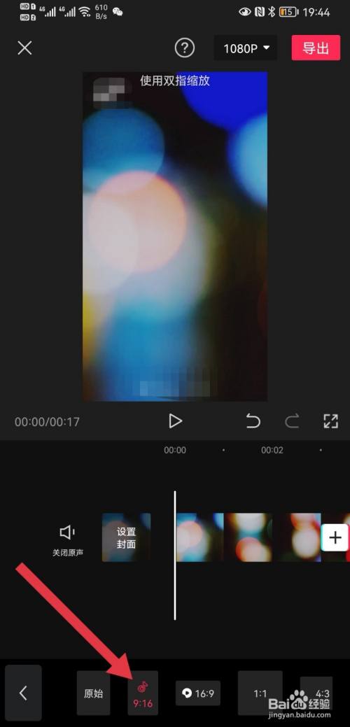 页面弹出选项点击9:16,点击右上方的导出。