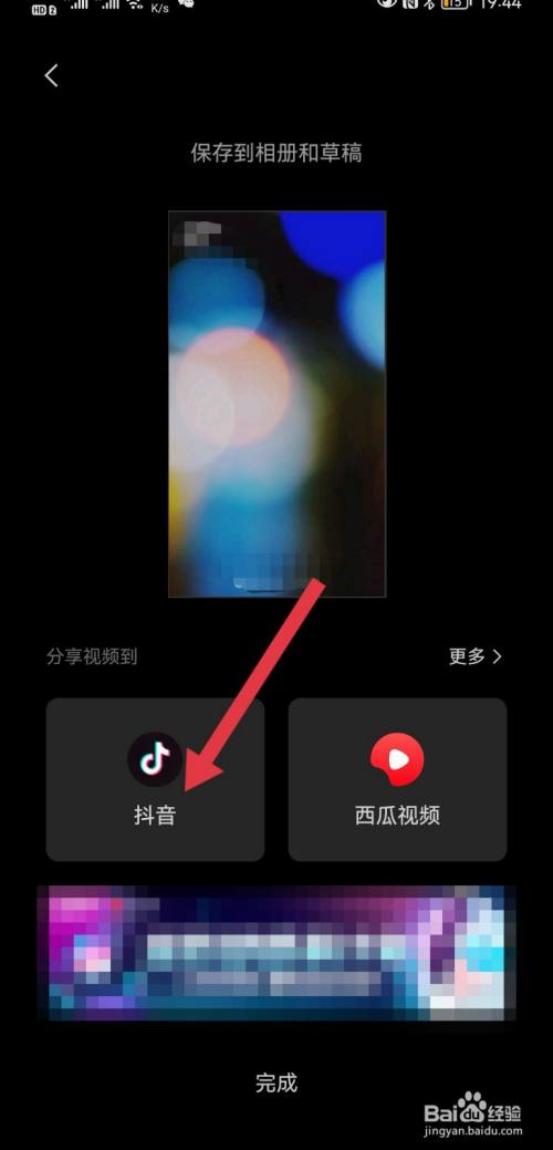 页面弹出分享视频到,点击抖音。