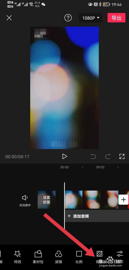 把视频导入剪映,点击背景。