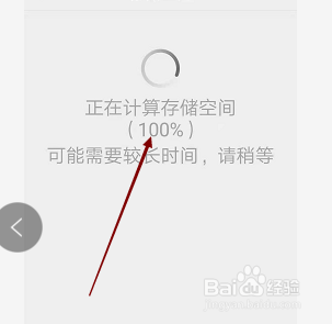 等计算存储空间进度达到100%后。就可以准备删除聊天记录了。