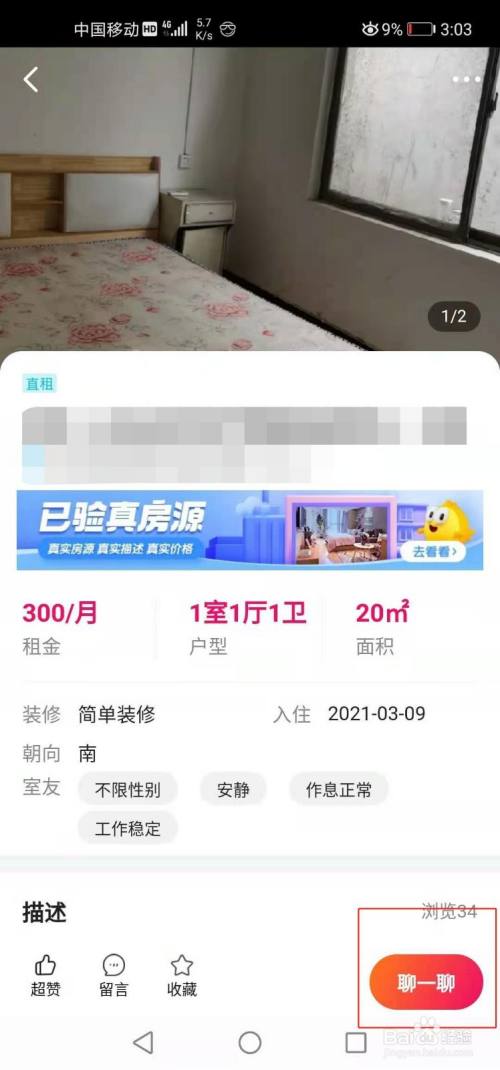 如图所示,点击”聊一聊“,即可和房东进行沟通。
