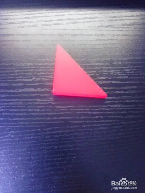 拿出一个粉色小号三角形板放在红色大号三角形板的左边,如图所示。