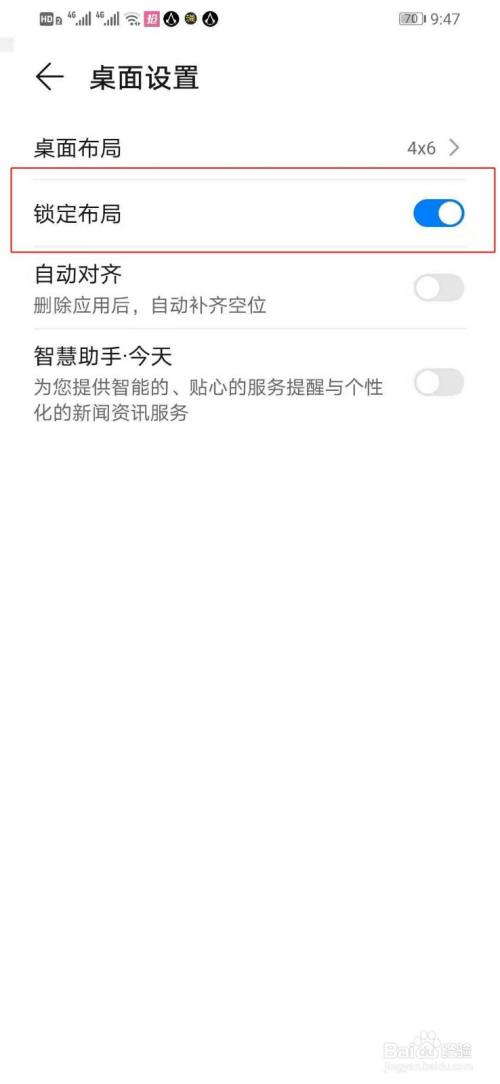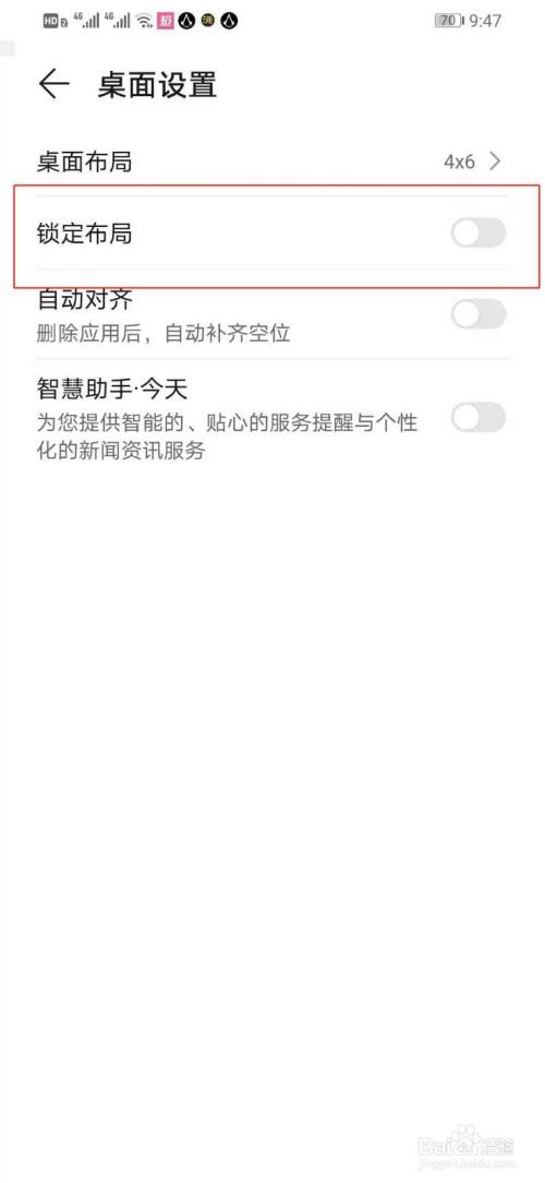 最后如果想要更改现有桌面布局,只需要将其后边的开关条关闭即可。如图