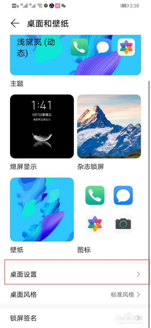 打开“桌面和壁纸”之后,在新的界面找到“桌面设置”,如图