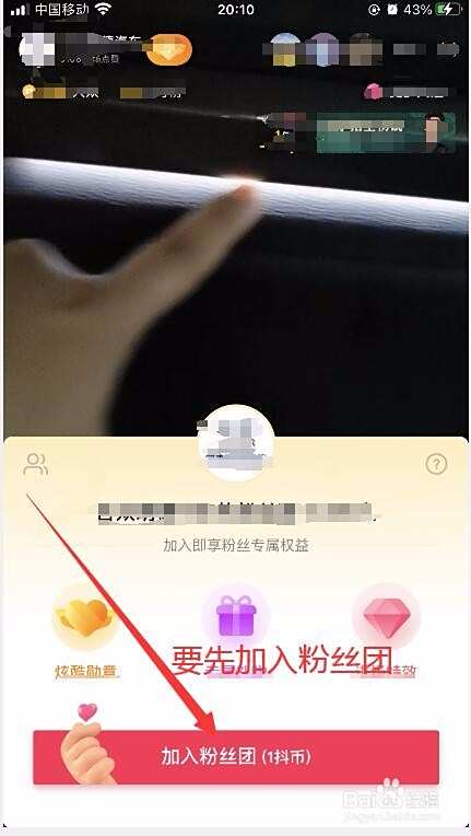 显示需要我们加入主播的粉丝团,因为要进群组,咬咬牙加入吧。:)