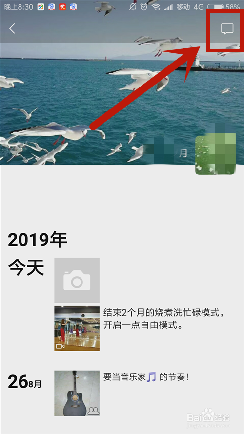 在“我的朋友圈”的右上角,点击消息按钮,具体如图。