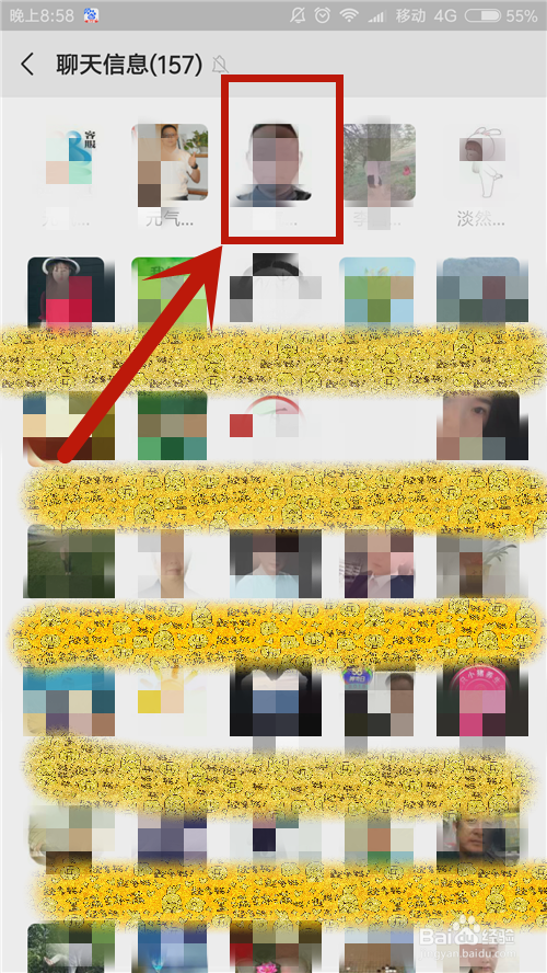 2、群中所有成员的信息全部显示,点击被删除的朋友。