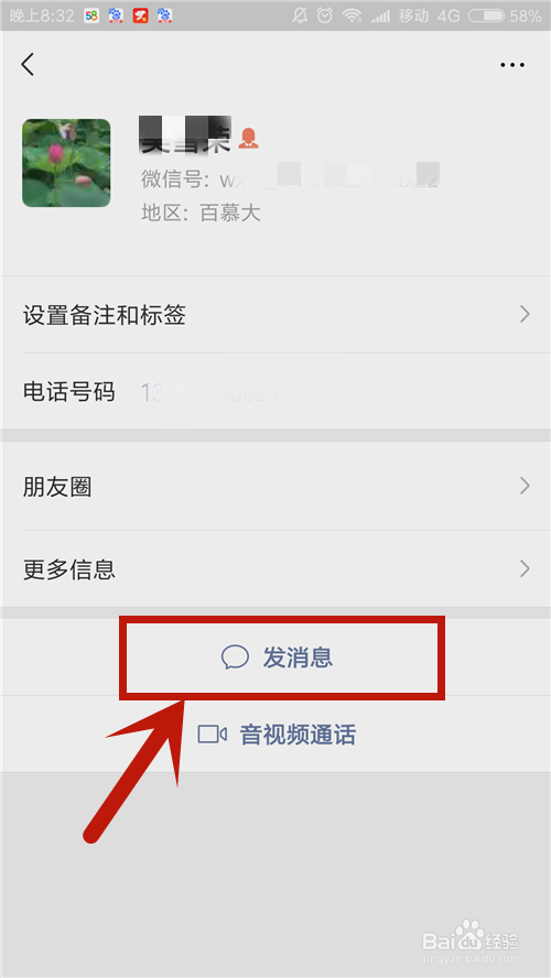 同样,不用对方验证,便直接找回了朋友,点击【发消息】。